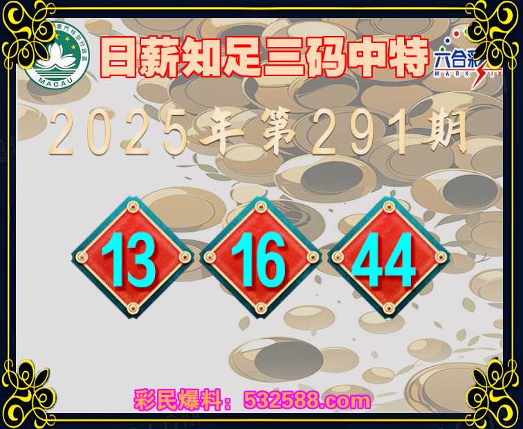 291期:【日薪知足】 🧦三码中特🧦【13.16.44】开:44准