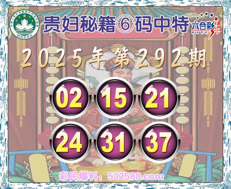 292期: 贵妇秘籍 🥖⑥码中特🥖【02.15.21.24.31.37】开:02准