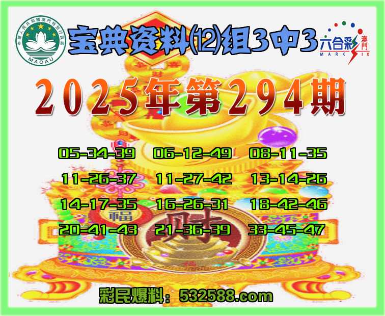 294期:《宝典资料》 🤩⑿组3中3🤩