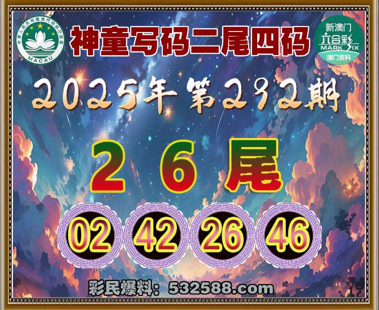 292期:《神童写码》 🍄二尾四码🍄【26尾主:02.42.26.46】开:02准