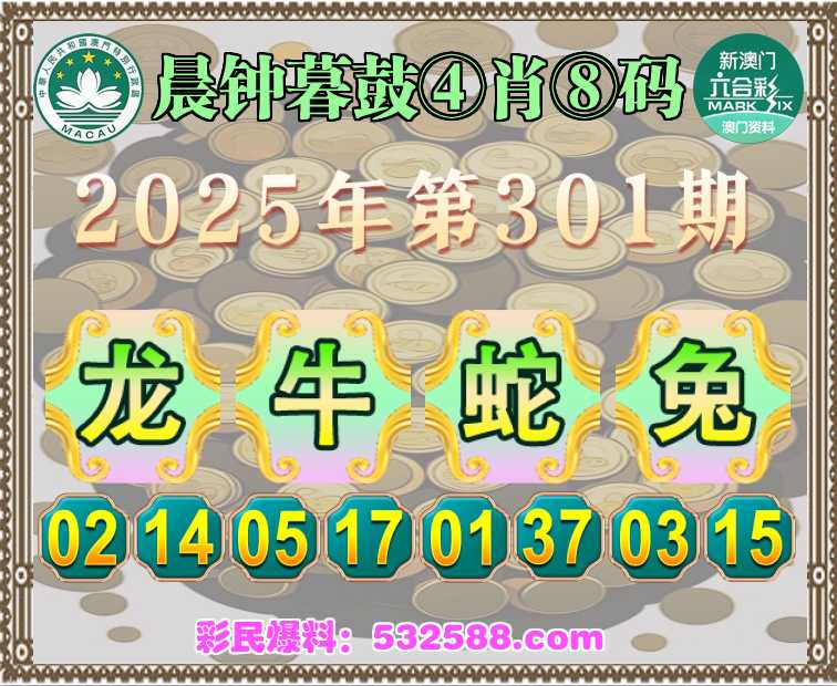301期:《晨钟暮鼓》 🌅④肖⑧码🌅【龙牛蛇兔】开:牛05准