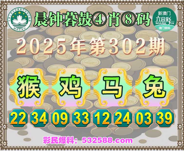 302期:《晨钟暮鼓》 🌅④肖⑧码🌅【猴鸡马兔】开:猴22准