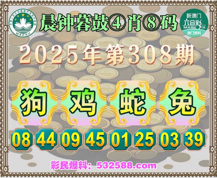 308期:《晨钟暮鼓》 🌅④肖⑧码🌅【狗鸡蛇兔】开:兔39准