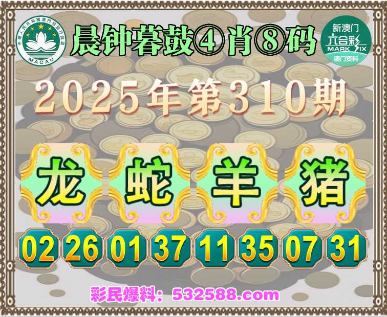 310期:《晨钟暮鼓》 🌅④肖⑧码🌅【龙蛇羊猪】开:虎16错