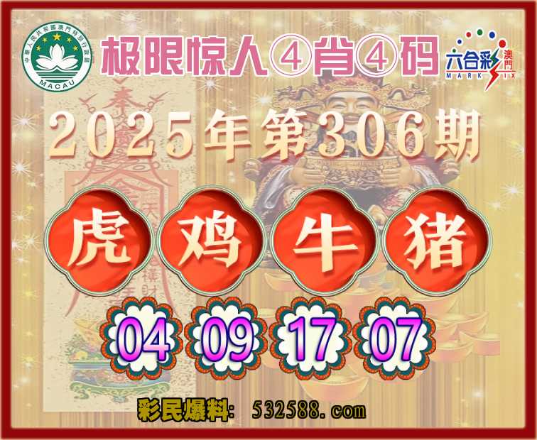 306期:『极限惊人』 💎④肖④码💎【虎鸡牛猪】【04.09.17.07】开:牛17准