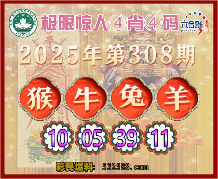 308期:『极限惊人』 💎④肖④码💎【猴牛兔羊】【10.05.39.11】开:兔39准