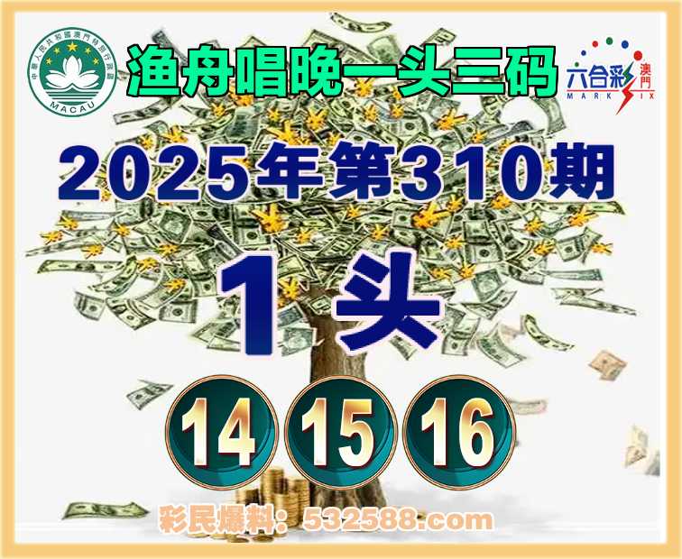 310期: 🤘『渔舟唱晚』 🤘一头三码🤘【1头主:14.15.16】开:虎16准