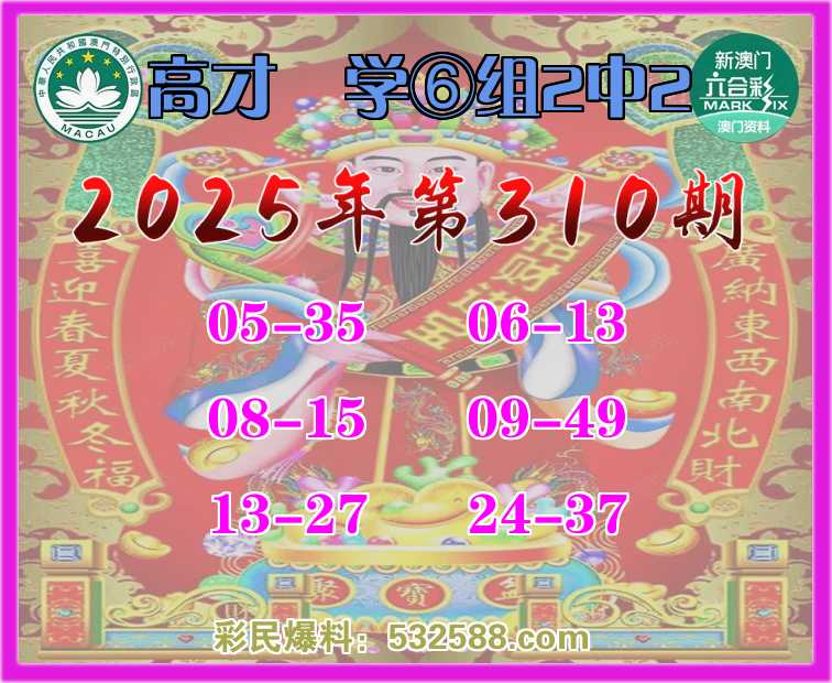 310期:《高才絶学》 🥖⑥组2中2🥖