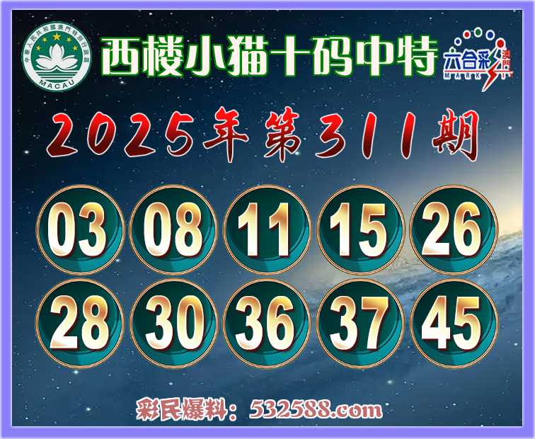 311期: 🌳『西楼小猫』 🌳十码中特🌳开:37准