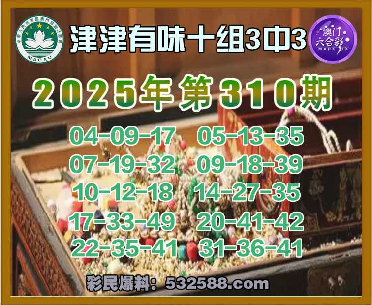 310期:【津津有味】 👚十组3中3👚