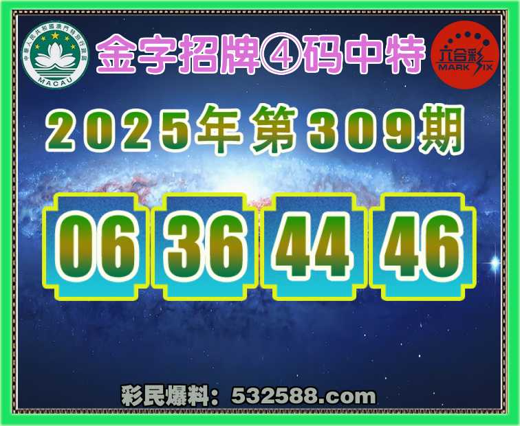 309期: 🌲『金字招牌』 🌲④码中特🌲【06.36.44.46】开:06准