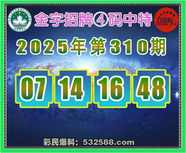 310期: 🌲『金字招牌』 🌲④码中特🌲【07.14.16.48】开:16准
