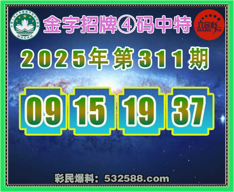 311期: 🌲『金字招牌』 🌲④码中特🌲【09.15.19.37】开:37准
