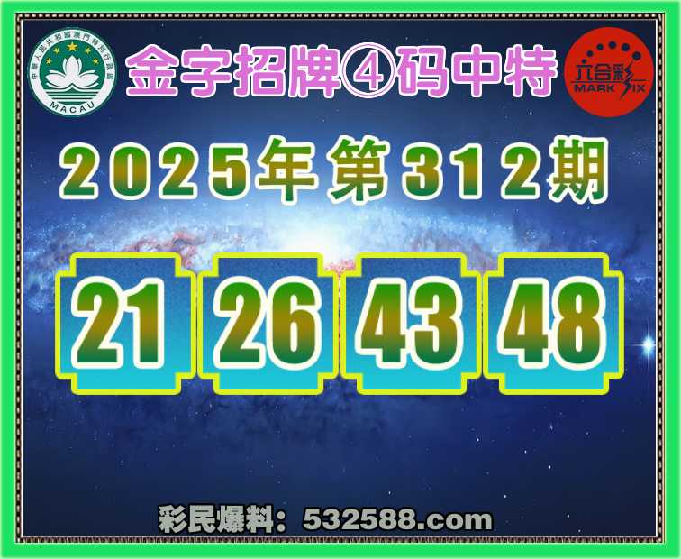 312期: 🌲『金字招牌』 🌲④码中特🌲【21.26.43.48】开:00准